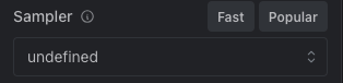 There are remixable images uploaded to the gallery whose sampler was not recognized so the sampler dropdown defaults to undefined, which still permits a remix’s Generate button to submit the job – but it immediately yields no images, showing no errors explaining the problem to the user.